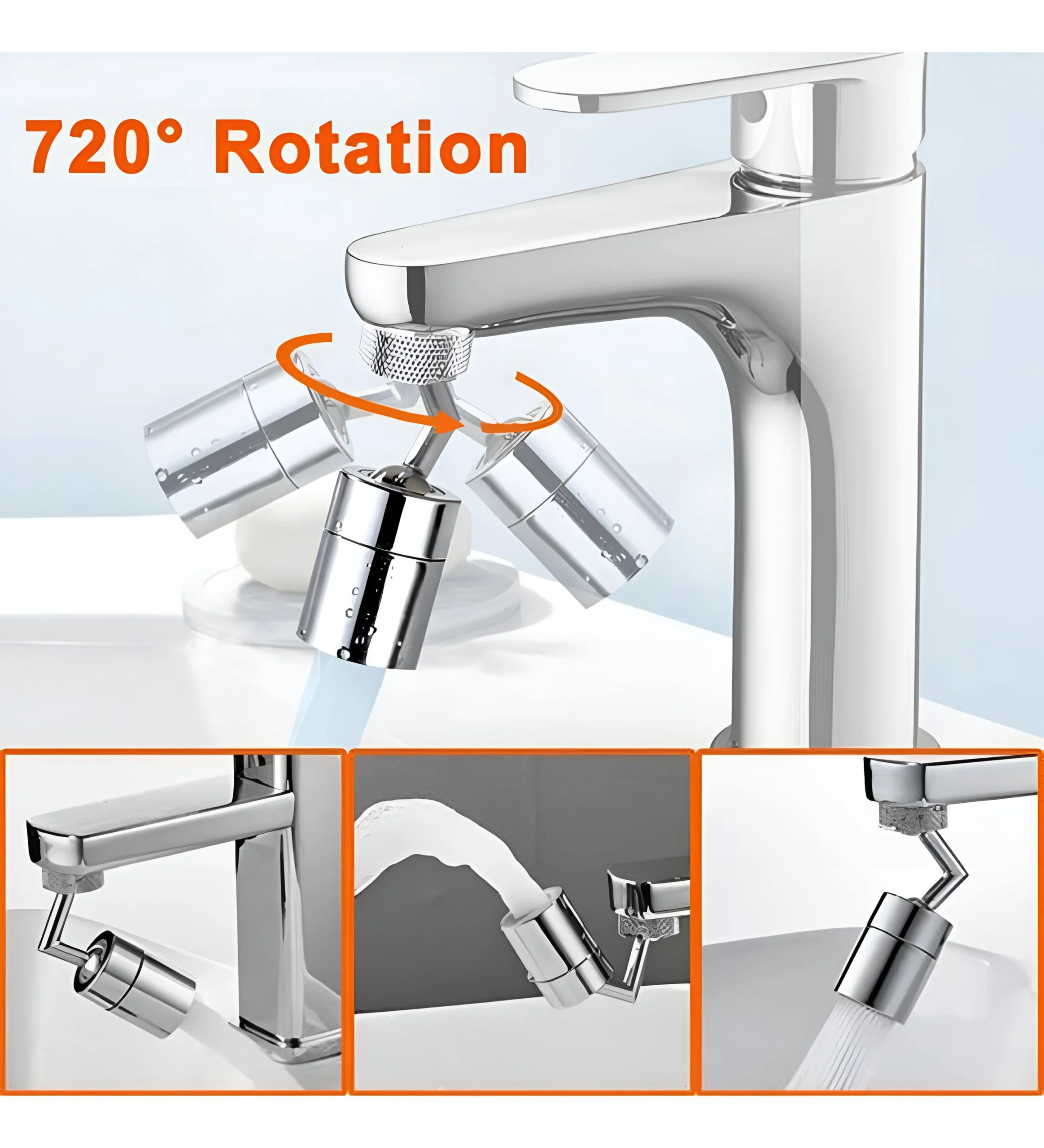 720° Rotating Faucet Aerator — Fits All Taps | Splash + Shower Mode | Water Saving